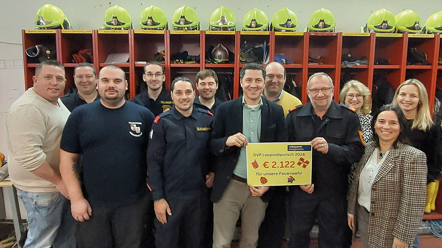 Bürgermeister Ronald Gutscher und eine Abordnung unserer Mandatare übergaben der Freiwilligen Feuerwehr Königstetten die Spenden-Einnahmen des Leopoldipunsches – stolze 2.122 Euro. Diese Summe deckt jedenfalls den Ankauf der im Zuge des Hochwassereinsatzes in Mitleidenschaft gezogenen Handschuhe für die Mannschaft ab. Wir bedanken uns noch einmal für Ihren Besuch und die rege Spendenbereitschaft – die letztendlich wieder uns allen zu Gute kommt, wenn unsere Feuerwehr gut gerüstet ist.